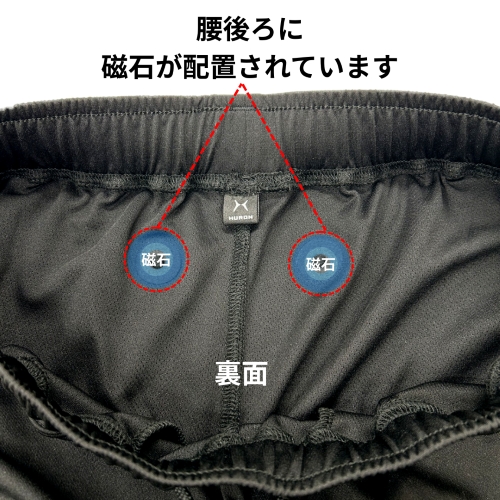 背面の腰部に配置された磁石が滞った血行を促進し、下半身のこりの改善をサポートします。